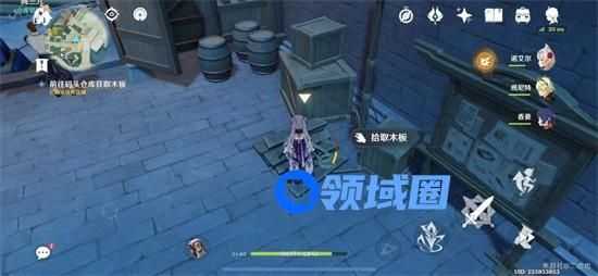 8、来到码头仓库,在告示牌左边拿木板。