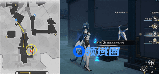 1、首先传送到【幽囚狱-1层】下图位置和【鬼鬼祟祟的机巧鸟】对话,跟前有个宝箱可以顺便拿了;