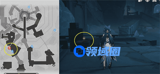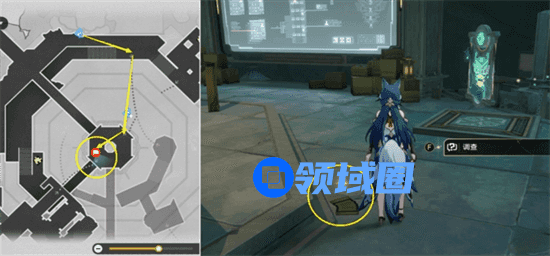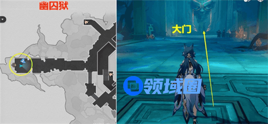 1、来到【幽囚狱-1层】下图位置【调查】发光点;
