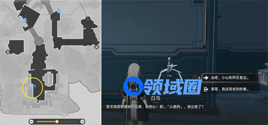 4、然后自动传送到下图位置后,继续和【白鸟】对话【走吧,小心别死在里边】;