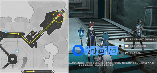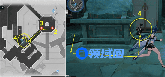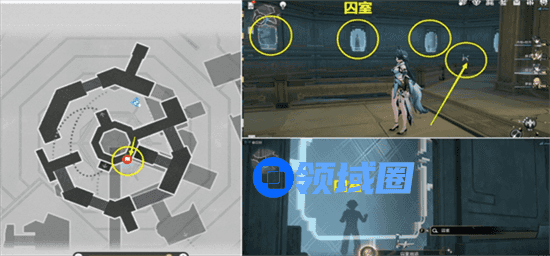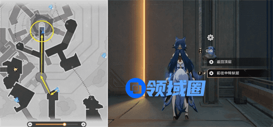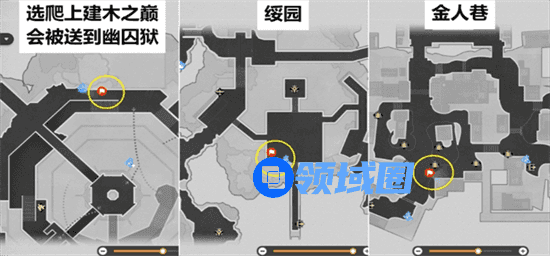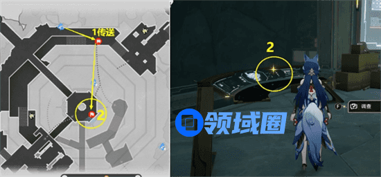 1、传送【幽囚狱1层】下图位置后,通过1位置飞到2位置发光点【调查】后触发剧情,接着需要找到3个逃跑的犯人;