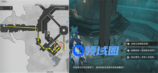 1、首先传送到【幽囚狱-1层】下图位置【调查】后选择【要不,再看一会吧?】,接着会触发剧情对话;