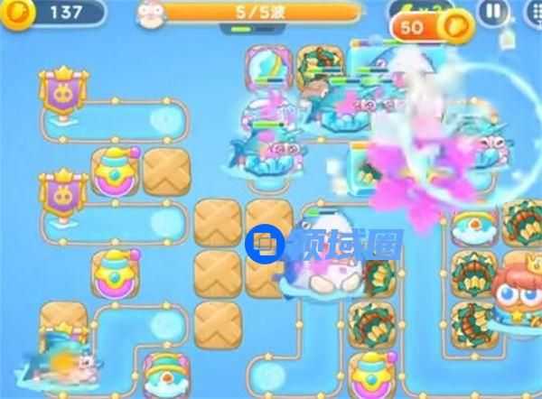 5、最后一波可以建造月亮塔和烟花塔,前提是障碍物要全都清理掉。