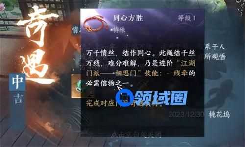 3、完成奇遇,即可获得相思门技能升级信物【同心方胜】。