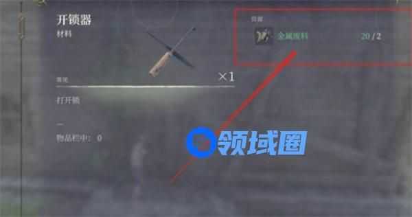 3、金属废料最实用的使用方法就是去制作开锁器,毕竟前期一个房子的物资是非常关键的,各种木材、石头的都是刚需。