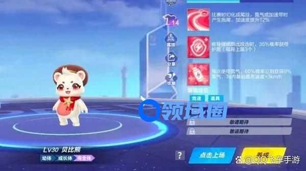贝比熊是全新的首充宠物,外观呆萌可爱。均衡的技能,竞速道具都可以使用。在贝比熊的带领下一定可以让车手们突出重围。