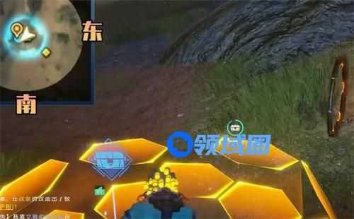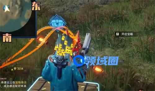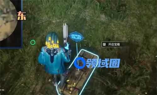 向东北方向移动,将石头后方的道具放进容器中完成解谜获得宝箱。