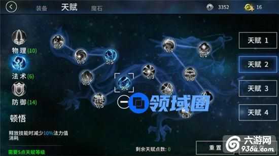 2、哪咤天赋10-6-14。点出攻速天赋,即使局势所迫出肉也有一定攻速,蓝耗天赋提供续航,剩下选择防御,十分稳健。