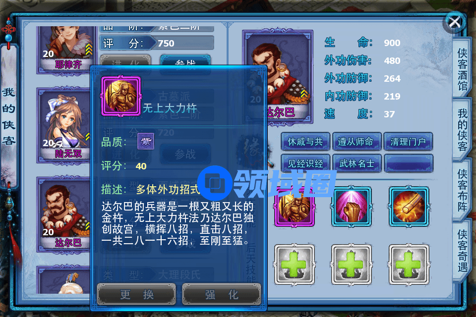 西域二流外功型侠客:郭襄(专属技能 九阳功)、达尔巴(无上大力杵)、霍都(狂风迅雷功)