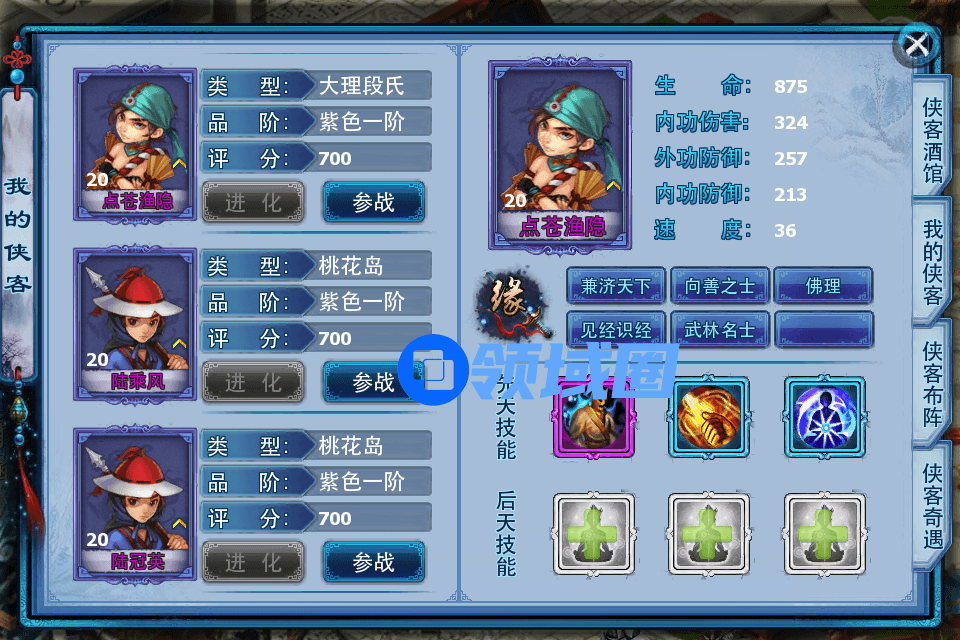 四、个人侠客搭配建议篇(只是建议,不喜勿喷)