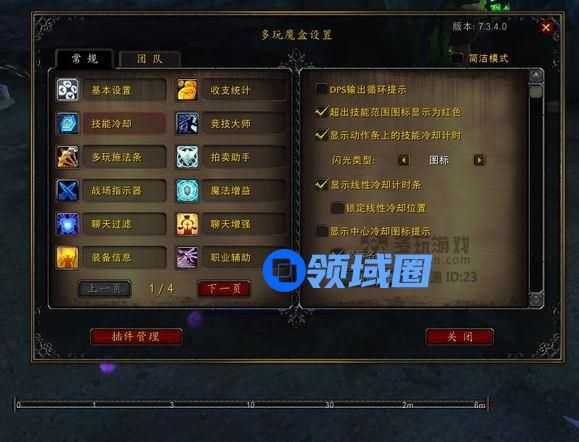 技能冷却里面的线性冷却计时条,就是图片下方这个长棍子,比较直观的表现技能冷却,技能图标从右往左,移动到最左边就是冷却完毕,看这个需要对自己的技能设置键位比较熟悉,才能不看键盘第一时间放出技能。其他几个功能也就超出距离基恩那个显示红色比较有用