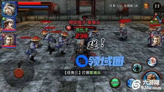 第三个任务是打倒朝廷高手 鳌捕头(力量型),鳌捕头绝技狮吼功会对一个面进行范围伤害,在他施放技能前,一定要躲开,最有效的方式是绕圈击杀,使用之前积攒的怒气!