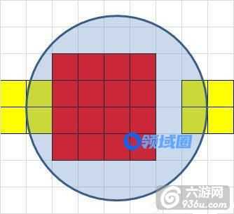 而地震的作用方式和冰冻不同,上图的黄圈是地震范围。只要被搭边,周围红圈防御全部伤血。