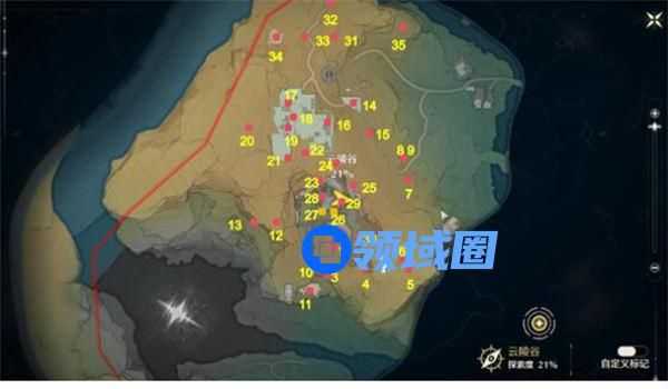 位置一:云陵谷共有:三十五个宝箱,一个声匣在(标点26 27)位置;