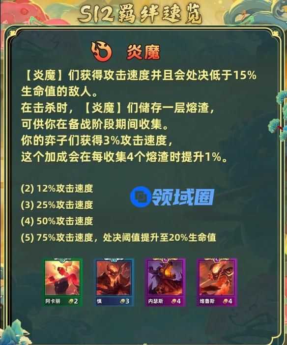 以上就是为大家带来的金铲铲之战s12换形炎魔阵容攻略,希望对大家有所帮助。更多精彩内容,敬请继续关注领域圈。