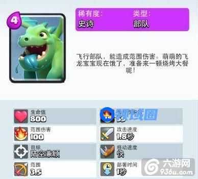 龙宝宝是初始赠送4张紫卡列表的其中之一,龙宝宝是不会被地面单位攻击的,加上伤害有溅射效果