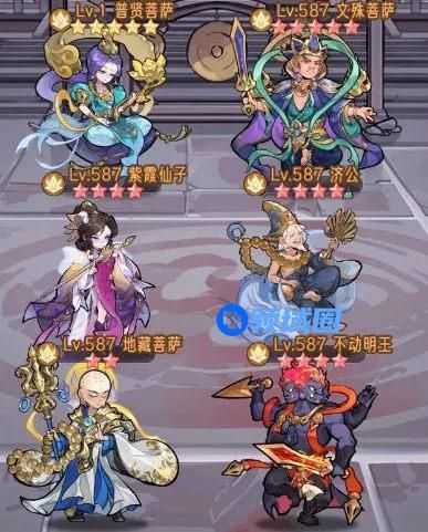 一号位:文殊菩萨;二号位:济公;三号位:不动明王;四号位:普贤菩萨/观音菩萨;五号位:紫霞仙子/唐三藏;六号位:地藏菩萨