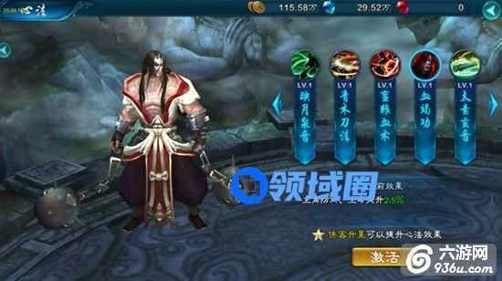 主角防御、生命提升2.5%(心法效果随侠客星级提升)