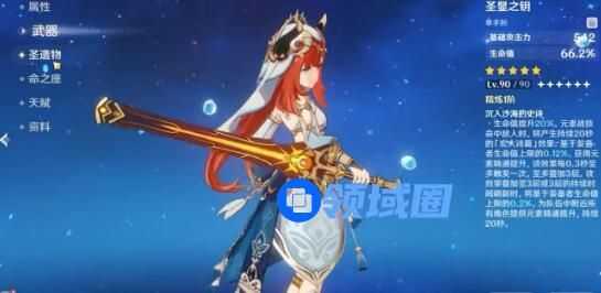 外观专武,90级副词条加165的元素精通,武器特效根据元素精通转化加元素充能效率,可以说非常适合主C或者副C的妮露来用。