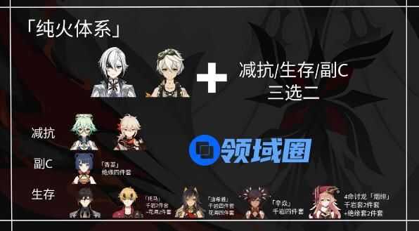 该队伍构建原理即围绕火元素直伤为核心,输出手法要求很低,比较简单暴力。