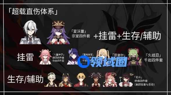 该队伍构建原理即以夏沃蕾天赋机制为核心,雷火混伤输出。值得一提的是,如果第三位队友是北斗,那么北斗可以兼顾挂雷与生存,此时第四位可以选择辅助输出角色。
