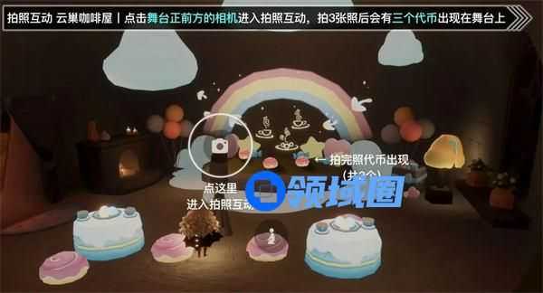 1、在云巢咖啡屋,点击舞台正前方的相机进入拍照互动,拍3张照后就会有3个大耳狗代币出现在舞台上;