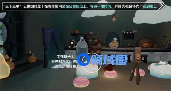 2、云巢咖啡屋中,坐在任意位置上,等待一段时间后,胖胖先祖会将代币送到桌上