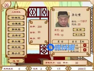 - 李大嘴:擅长烹饪,如“七珍鸳鸯烩”和“相思白玉汤”,能提升属性。