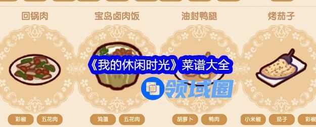 以上就是为大家带来的我的休闲时光菜谱大全,希望对大家有所帮助。更多精彩内容,敬请继续关注领域圈。