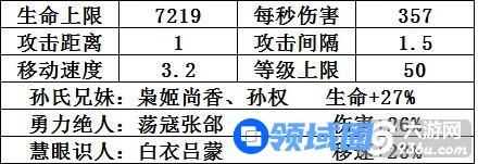 属性可观,生命值属盾类武将最高,移速不低,能够成为一名合格的肉盾。技能强力,霸王孙策的技能具有两大效果,首先是开启护盾吸收伤害,能够提升霸王孙策的生存能力,其次是立即眩晕7格内最多3名敌方武将5秒,能够作为强力的控制技能。一定程度上可以看做许褚与姜维的结合体