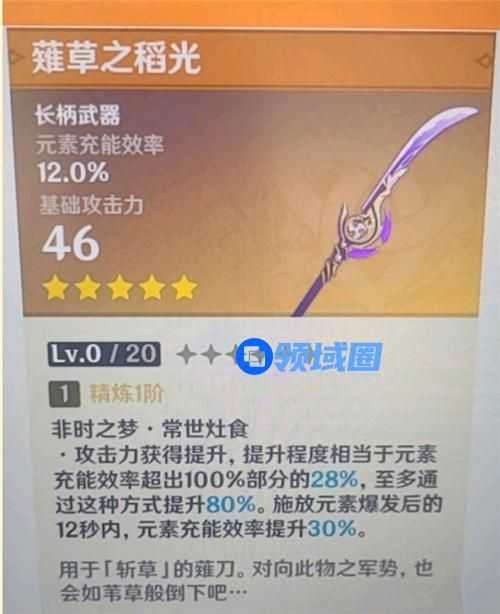 原神官方自从放出了雷神的角色以后,更多的消息也是出来了,除了技能,还有就是她的专武武器,和很多玩家猜测的一样,就是剧情里面的薙刀,目前这把专武名字叫做薙草之稻光,那么这把武器的属性是什么样呢,今天小编就给大家介绍一下,一起来看看吧。
