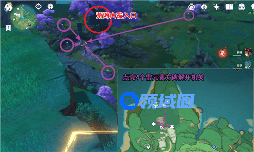 首先我们来到慌海这个地段,找到四个雷元素方碑,点亮方碑,然后解开机关。