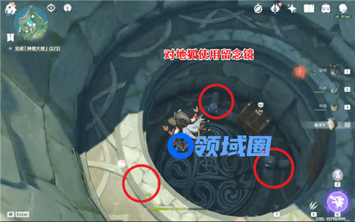 对三只地狐使用留念镜,然后按压出现的机关,这样天井就打开了,从这里可以进入荒海地下。