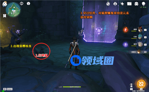 还是对地狐用留念镜会出现雷樱枝条,拾取雷种子,穿过结界拿到镇物。