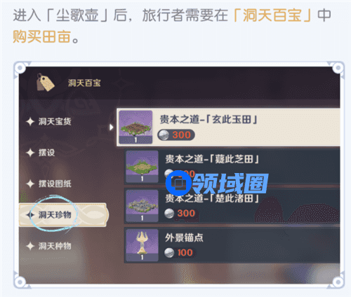 我们先进入洞天百宝中购买田地,需要花费一定的洞天宝钱。