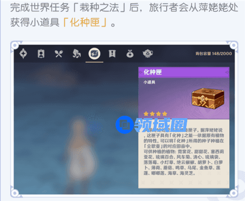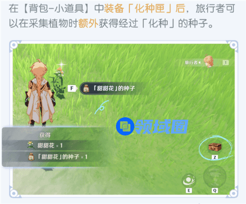 玩家在解锁家园种植玩法后,会获得道具化种匣,持有该道具后前往地图内采集植物,就有一定几率可以获得对应植物的种子了。