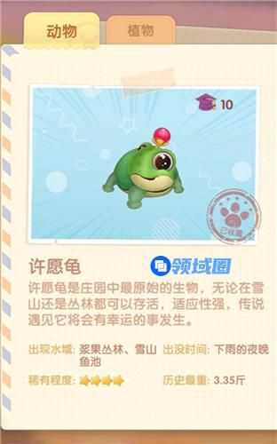 大家可以在浆果丛林 、雪山鱼池这两个地方钓取许愿龟。大家要注意它只有在下雨的夜晚会刷新,其余的时间我们怎么钓都是钓不到的。