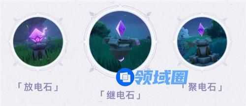 如果「放电石」放出的电流能顺利传导至「聚电石」,或许可以得到意外的收获。当放电石与聚电石距离较远时,旅行者们可以选择合适位置放置继电石,对电流进行传导。