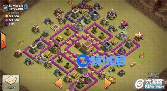 这种其他建筑靠外,防御建筑仅仅只有一墙之隔的阵形,非常适合使用皮法流。
