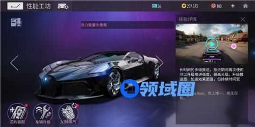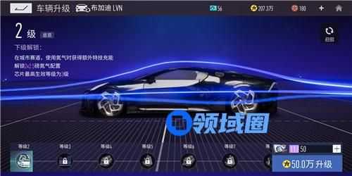 要想升级布加迪,玩家需要准备大量三重推进特技零件与金币,并且等级越高,对材料的需求量就越多。当然,也可用万能零件替代三重推进,升级后布加迪的极限速度会提高、特技的持续时间也会延长。