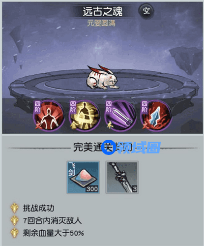 上古战场主要的飞剑获取来源。在通关关卡后可以获得石胎,然后在化胎中即开出飞剑。