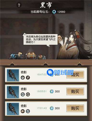 黑市是一个供玩家之间互相交易飞剑的地方,能够出售地阶及以上的飞剑,每次在黑市上架飞剑都要消耗2000灵石,售价可以自己设定在300~1000仙玉,挂在黑市的最长时间是20小时。