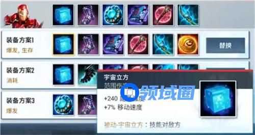 这套出装的爆发伤害是最高的,宇宙立方是最主要的装备,不能够少。