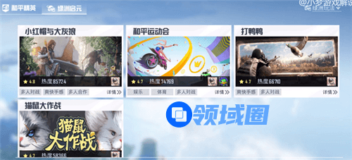 如上图所示,玩家在绿洲启元中可以看到有小红帽与大灰狼、和平运动会、打鸭鸭、猫鼠大作战四种不同的模式。