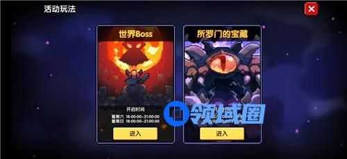 这是进入后的画面。每个星期,boss在世界上的属性都不一样,按照木、水、火的顺序旋转。