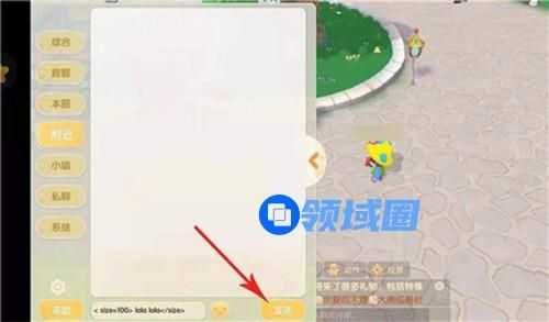 2、在完成对应的编辑后,即可通过发送框完成发送。注意,100指的是字体的大小,玩家可根据需求进行配置,100往上增加的数字是变大,往下缩减的数字是变小哦!
