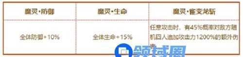 基础增益:生命840万、攻击600000、物防435000、法防435000,全属性5%。