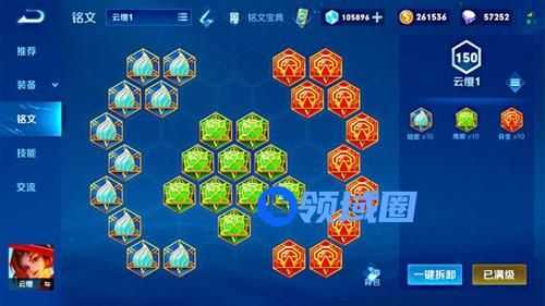 最后是云缨铭文推荐:10隐匿,10鹰眼,10异变,这是大部分战士、刺客通用的高攻百穿铭文,可以较大限度提高云缨前期的作战能力。