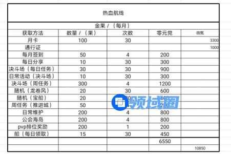 下面的表格将会为大家分享每个月金果通过各种渠道能够获取到的数量、次数。不仅囊括日常活动,还有随机任务以及排位奖励等等。
