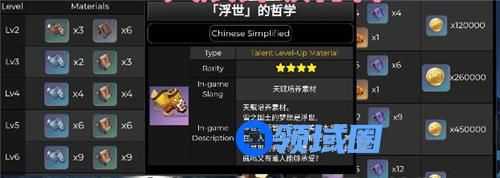 天赋书用到的是在1.7版本更新之后新加入的叫做【浮世的哲学】的天赋书,预计在稻妻地图中也将会上线全新的天赋书副本来获得,周常boss材料用到的是若陀龙王的。